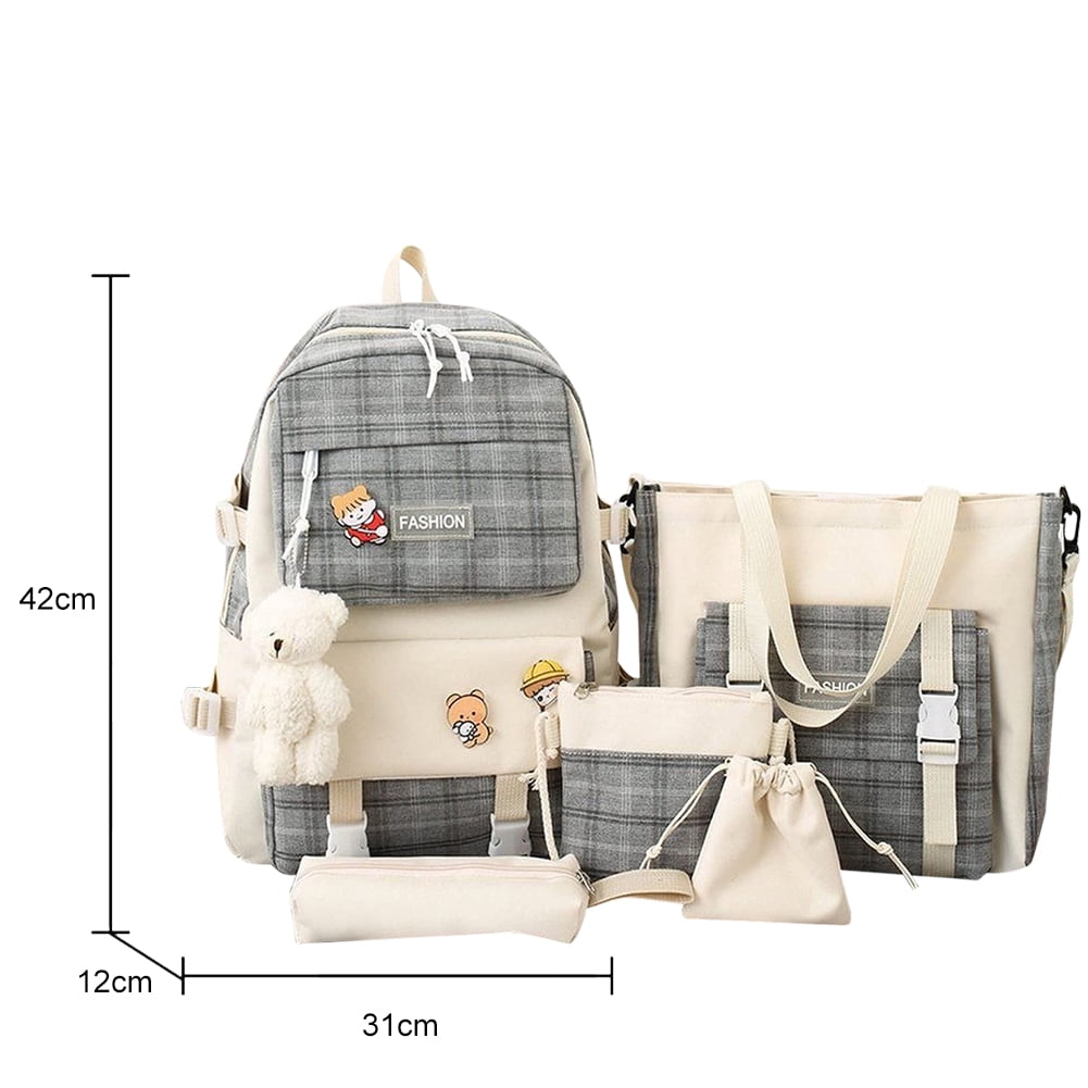 Peggybuy 5pcs Plaid Casual Backpack Combo Set Pendant Badge Canvas School Bags Green Walmart Canada